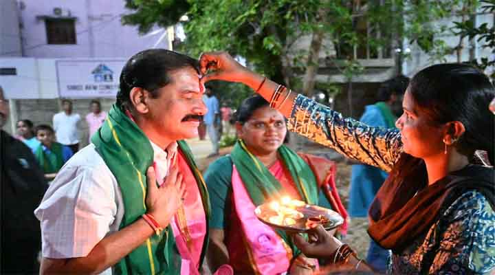 వరంగల్ టైమ్స్, హనుమకొండ జిల్లా : తెలంగాణ అసెంబ్లీ ఎన్నికల నేపథ్యంలో బీఆర్ఎస్ పార్టీ ఎమ్మెల్యే అభ్యర్థులు ప్రచారాన్ని ముమ్మరం చేశారు. ఇందులో భాగంగానే వరంగల్ పశ్చిమ నియోజకవర్గంలో ప్రభుత్వ చీఫ్ విప్ దాస్యం వినయ్ భాస్కర్ ఇంటింటి ప్రచారాన్ని ముమ్మరం చేశారు. వరంగల్ పశ్చిమ నియోజకవర్గంలోని 49,50వ డివిజన్లలోని జులైవాడ జంక్షన్,జులైవాడ, పోస్టల్ కాలనీ, నాగేంద్ర నగర్ లలో బీఆర్ఎస్ పార్టీ మేనిఫెస్టోకు సంబంధించిన కరపత్రాలను ఇంటింటికి పంచుతూ ప్రచారం నిర్వహించారు.ప్రచార కార్యక్రమంలో భాగంగా కాలనీ వాసులు చీఫ్ విప్ దాస్యం వినయ్ భాస్కర్ కు బ్రహ్మరథం పట్టారు. వీర తిలకం దిద్ది ఆశీర్వదించారు.కేసీఆర్ పాలనలో అందిస్తున్న సంక్షేమ పథకాలు తమకెంతగానో ఉపయోగపడుతున్నాయని ఆనందం వ్యక్తం చేశారు.