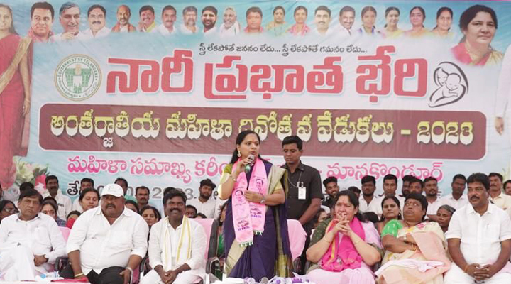 “అమ్మ లేకపోతే ఆడబిడ్డ లేకపోతే ఒక్కరోజు కాదు ఒక గంట కూడా ఇల్లు గడవదు. ఉదయాన్నే లేచి ఇల్లు చక్కదిద్దుతారు. ఇప్పుడు మహిళలకు అన్ని రంగాల్లో అవకాశాలు లభిస్తున్నాయి. అవకాశాలను అందిపుచ్చుకునే ఆత్మస్థైర్యం ఆడబిడ్డలకు రావాలి” అని కవిత అన్నారు. తెలంగాణ రాకముందు ఆడపిల్లలను చదివించాలంటే బస్సులు లేక, విద్యా సంస్థల్లో టాయిలెట్లు లేక సమస్యగా ఉండేదని గుర్తు చేశారు. కానీ ఇప్పుడు పరిస్థితి మారిందని, గ్రామాల నుంచి మండల కేంద్రాలకు రోడ్లు వేసుకున్నామని, పల్లె వెలుగు బస్సుల సౌకర్యం పెరిగిందని, రూ. 8 వేల కోట్లతో ప్రతీ పాఠశాలలో బాత్ రూం లను కేసీఆర్ ప్రభుత్వం దశలవారీగా నిర్మిస్తుందని వివరించారు. ఎస్సీ, బీసీ మహిళా విద్యార్థుల కోసం డిగ్రీ కాలేజ్ హాస్టల్స్నిర్మించిన ఘనత సీఎం కేసీఆర్ కు దక్కుతుందని తేల్చి చెప్పారు. ఆడపిల్లలను చదివించాలని పిలుపునిచ్చారు. పెళ్లి చేయడానికి 18 ఏళ్ల వయస్సు వచ్చేవరకు చదువు తప్ప ఏ పని ఉండకూడదని అభిప్రాయపడ్డారు. వివాహాన్ని కూడా ఆడబిడ్డల మేనమామ కేసీఆర్ చూసుకుంటారని, కళ్యాణలక్ష్మి అందిస్తున్నారని చెప్పారు.
