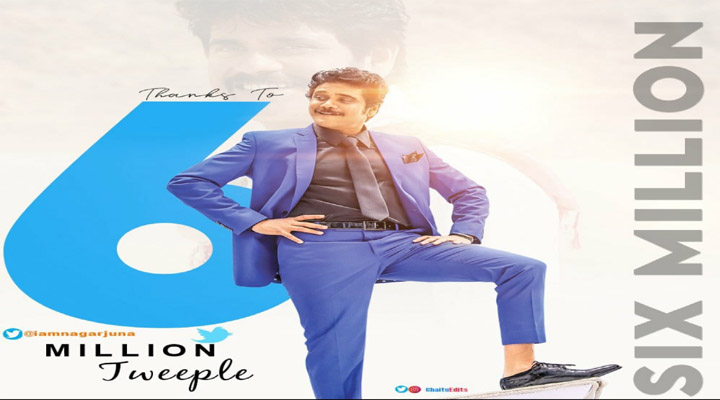 హైదరాబాద్: కింగ్ అక్కినేని నాగార్జున సోషల్ మీడియా మాధ్యమం అయిన ట్విట్టర్ లో యక్టి వ్ గా ఉంటారు. తన అభిప్రాయాలను, సినిమా విశేషాలను ఫ్యాన్స్, ఫాలోవర్స్ తో ఎప్పటికప్పుడు పంచుకుంటూ ఉంటారు. నాగార్జున ట్విట్టర్ అకౌంట్ ను ఫాలో అయ్యేవారి సంఖ్య 6 మిలియన్ మార్కు ను దాటింది. ఈ సందర్భంగా నాగార్జున తన ట్విట్టర్ ఫ్యామిలీ కి కృతజ్ఞతలు తెలిపారు.
