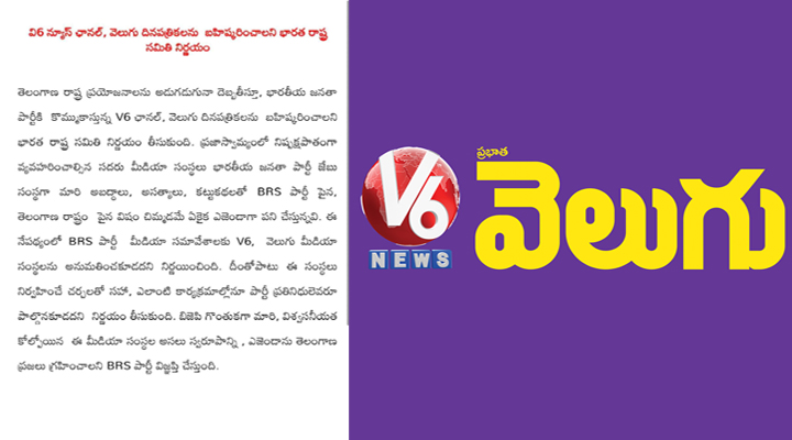 వీ6, వెలుగును బహిష్కరిస్తూ బీఆర్ఎస్ నిర్ణయం