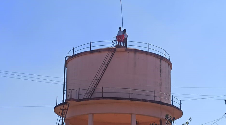 వరంగల్ రూరల్ జిల్లా: ఓ వైపు కేంద్ర ప్రభుత్వం ప్రవేశపెట్టిన రైతు చట్టాలను వ్యతిరేకిస్తూ బీజేపీ మినహా అన్ని రాజకీయ పార్టీలు నిరసన గళం వినిపిస్తున్నాయి. రైతులు, కార్మిక సంఘాలు తలపెట్టిన భారత్ బంద్ కు మద్దతుగా రైతులు, కార్మికులతో పాటు అన్ని వర్గాల ప్రజలు రోడ్డెక్కి నిరసన తెలిపాయి, రోడ్లు దిగ్భంధం చేసి రాస్తారోకో చేశారు. రైతు వ్యతిరేక చట్టాలను రద్దు చేయాలంటూ అఖిలపక్షం ఆధ్వర్యంలో పలు రాజకీయ పార్టీల నాయకులు వినూత్న రీతిలో నిరసనలు తెలిపారు. ఇదిలా వుండగా వరంగల్ రూరల్ జిల్లా నర్సంపేట మండలం వల్లభ్ నగర్ లో ఇద్దరు రైతులు వాటర్ ట్యాంక్ ఎక్కి నిరసన తెలిపారు. సన్న వడ్లు పండించాలని చెప్పి, పండించిన సన్న వడ్లకు మద్దతు ధర కల్పించే నాధుడే లేరు, వాటిని కొనే నాథులే లేరంటూ నిరసన తెలిపారు. విషయం తెలుసుకున్న స్థానిక పోలీసులు నిరసన తెలుపుతున్న బాధిత రైతులను వాటర్ ట్యాంక్ పై నుంచి దింపే ప్రయత్నం చేశారు. అయినప్పటికీ ససేమిరా అన్న బాధిత రైతులు ప్రభుత్వం దిగివచ్చి స్పష్టమైన హామీ ఇచ్చేవరకు నిరసన కొనసాగిస్తాంటూ హెచ్చరించారు.