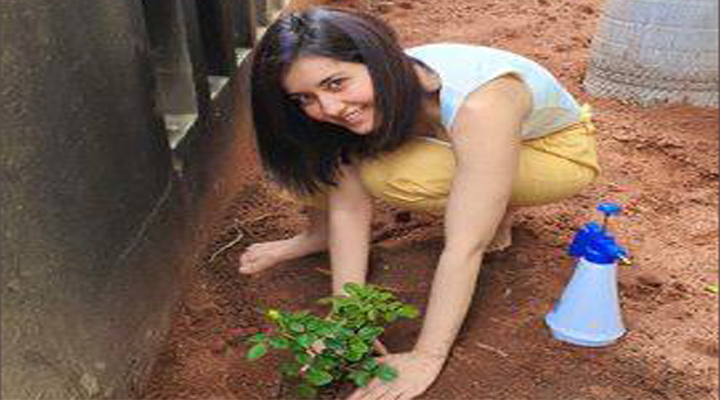 పాటు అన్ని వర్గాల ప్రజలు , పిల్లలు సైతం మొక్కలు నాటుతూ తమ సామాజిక బాధ్యతను నెరవేరుస్తున్నారు. గతంలో గ్రీన్ ఇండియా ఛాలెంజ్ ను స్వీకరించి మొక్కలు నాటిన టాలీవుడ్ బ్యూటీ రష్మీక మందాన్న ఛాలెంజ్ విసిరారు. రష్మిక ఇచ్చిన ఛాలెంజ్ ను స్వీకరించిన ప్రముఖ నటి రాశి ఖన్నా , ఈ రోజు షేక్ పేటలోని జేఎమ్మార్ వైట్ లోటస్ తన నివాసంలో మూడు మొక్కలు నాటారు. అనంతరం రాశి ఖన్నా మాట్లాడుతూ.. జోగినిపల్లి సంతోష్ కుమార్ ప్రారంభించిన గ్రీన్ ఇండియా ఛాలెంజ్ చాలా గొప్ప కార్యక్రమమని, పెరిగిపోతున్న కాలుష్యానికి తగ్గించడానికి , పర్యావరణ సమత్యులత కోసం మొక్కలు నాటే కార్యక్రమము , భవిష్యత్ తరాలకు ఎంతో మేలుచేస్తుంది . అంతేకాదు తన అభిమానులందరి ఈ ‘గ్రీన్ ఇండియా ఛాలెంజ్’ ను ముందుకు తీసుకుపోయేలా.. ప్రతి ఒక్క అభిమాని మూడు మొక్కలు నాటాలని పిలుపునిచ్చింది. తను మరో ముగ్గురు నటీమణులకు రఖుల్ ప్రీతీ సింగ్ , కాజల్ , తమన్నా లకు ఛాలెంజ్ స్వీకరించాల్సిందిగా కోరారు .ఇంత అద్భుతమైన కార్యక్రమాన్ని ముందుకు తీసుకుపోతున్న సంతోష్ కుమార్ గారికి నా కృతజ్ఞతలు అని అన్నారు.
