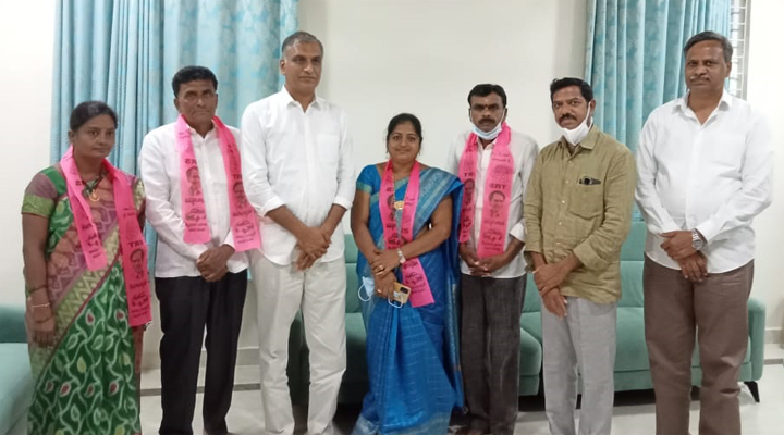 మంత్రి హరీష్ రావు, ఎమ్మెల్సీ పల్లా రాజేశ్వర్ రెడ్డి సమక్షంలో టీఆరెస్ లో చేరిన ఈదులకంటి రమాదేవి, ఈదులకంటి మంజుల
