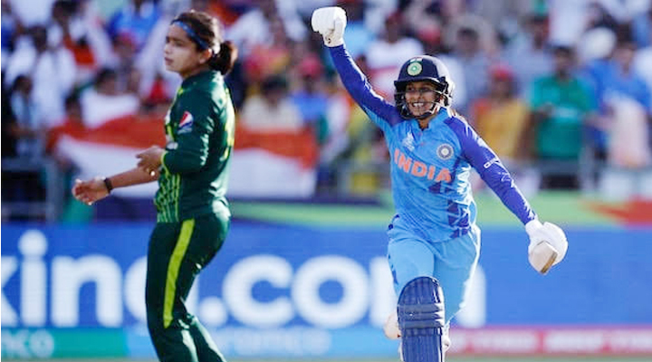 వరంగల్ టైమ్స్, స్పోర్ట్స్ డెస్క్ : దక్షిణాఫ్రికాలో జరుగుతున్న పొట్టి వరల్డ్ కప్ లో భారత్ బోణీ కొట్టింది. పాకిస్థాన్ పై 7 వికెట్ల తేడాతో విజయం సాధించింది. జెమీమా రోడ్రిగ్స్ అర్థ సెంచరీ ( 53 నాటౌట్ )తో గెలిపించింది. ఫాతిమా సనా వేసిన 19వ ఓవర్ లో జెమీమా రోడ్రిగ్స్ 3 ఫోర్లు బాదింది. దీంతో ఒక ఓవర్ మిగిలి ఉండగానే భారత్ విజయం సాధించింది. జెమీయా, రీచా ఘోష్ (31) నాలుగో వికెట్ కు 58 రన్స్ జోడించారు. విరోచితంగా ఆడి జట్టును గెలిపించిన జెమీమ ‘ప్లేయర్ ఆఫ్ ది మ్యాచ్ ‘ అవార్డు అందుకుంది.