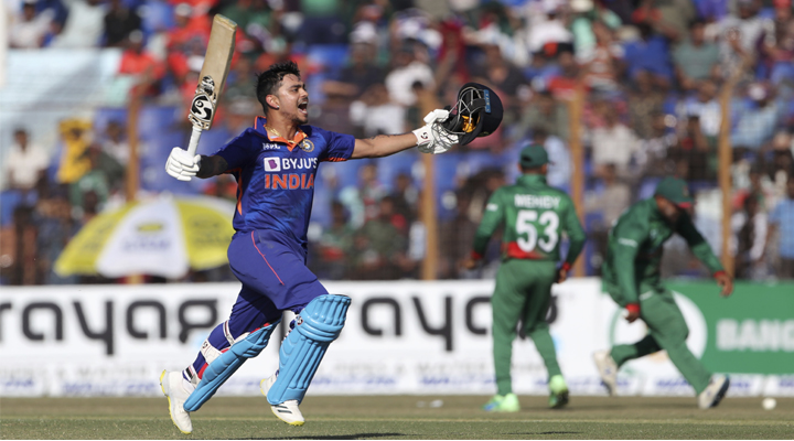 వరంగల్ టైమ్స్, స్పోర్ట్స్ డెస్క్ : చివరిదైన మూడో వన్డేలో భారత ఆటగాళ్లు రెచ్చిపోయి ఆడారు. ఇక శిఖర్ ధావన్ ఔటయ్యాక క్రీజులోకి వచ్చిన కోహ్లీ మరోసారి క్లాస్ ఇన్నింగ్స్ ఆడాడు. కోహ్లీ, ఇషాన్ బౌండరీలతో బంగ్లా బౌలర్లకు చుక్కలు చూపించారు. ఈ క్రమంలోనే ఇషాన్ వన్డేల్లో వేగవంతమైన డబుల్ సెంచరీ సాధించాడు. ఇషాన్ 204 పరుగులు తీసి ఔట్ అయ్యాడు. ఇలా భారత్ తరపున డబుల్ సెంచరీ బాదిన నాలుగో బ్యాటర్ ఇషాన్ కిషన్ కావడం విశేషం. కేవలం 126 బంతుల్లోనే డబుల్ సెంచరీ సాధించి, ఇప్పటి వరకు క్రిస్ గేల్ ( 138 బంతుల్లో) పేరిట ఉన్న రికార్డును బద్దలు కొట్టాడు.