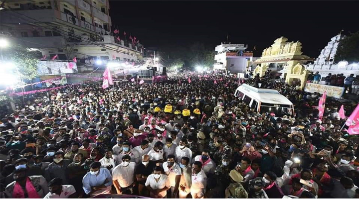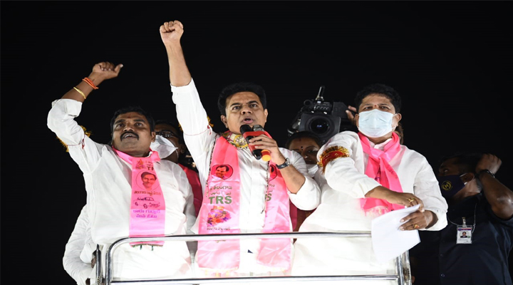 గత ఆరేండ్లుగా ముఖ్యమంత్రి కేసీఆర్ పాలనలో అనేక రంగాల్లో హైదరాబాద్ నగరాన్ని అద్భుతంగా తీర్చిదిద్దుకున్నామన్నారు. ఒక ఆపిల్, ఒక అమెజాన్, ఒక గూగుల్ వంటి కంపెనీలు ఈ రోజు హైదరాబాద్ నగరానికి వస్తున్నాయంటే దానికి కారణం నగరంలో ఉన్న ప్రశాంతత, శాంతి భద్రతలే అన్నారు. అలాంటి శాంతిభద్రలకు విఘాతం కలిగించే శక్తుల పట్ల అప్రమత్తంగా ఉండాలన్నారు. గతంలో లాగా హైదరాబాద్ లో ఎలాంటి అలజడులూ లేవన్నారు.ఈ ఆరేళ్లలో నగరాన్ని ఒక బస్తీ దావఖానాలు కానీ, నీళ్లు గానీ, కరెంటు గానీ ఏ రకంగా నైతే అభివృద్ధి చేసుకున్నామో అదే అభివృద్ధిని కొనసాగించాలంటే టీఆర్ఎస్ పార్టీ అభ్యర్థులను పెద్ద మెజారిటీతో గెలిపించుకోవాలన్నారు. ఈసారి జీచ్ఎంసీ ఎన్నికల్లో సెంచరీ కొట్టాలని ప్రజలకు కేటీఆర్ పిలుపునిచ్చారు. హైదరాబాద్ నగరం అభివృద్ధిలో మరింత ముందుకు పోవాలంటే ప్రజలందరూ టీఆర్ఎస్ ప్రభుత్వానికి, ముఖ్యమంత్రి కేసీఆర్ కి మద్దతు తెలపాలన్నారు. హైదరాబాద్ నగర అభివృద్ధి కోసం టీఆర్ఎస్ పార్టీ అభ్యర్థులను గెలిపించాలని ప్రజలకు పిలుపునిచ్చారు.
