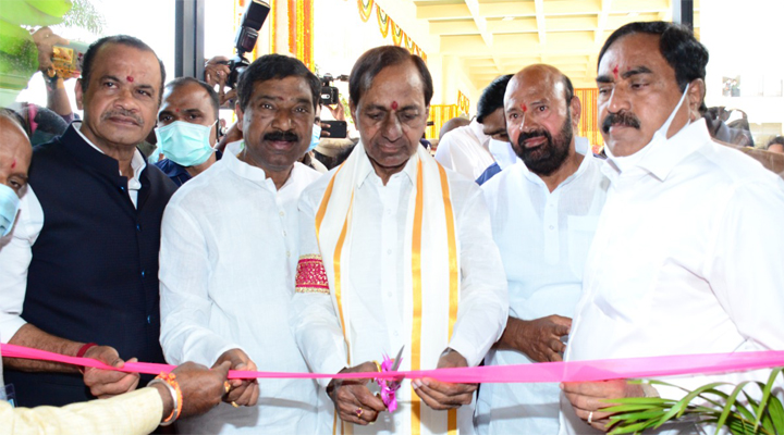 వరంగల్ టైమ్స్, జనగామ జిల్లా: సీఎం కేసీఆర్ జనగామ జిల్లాలో శుక్రవారం పర్యటించారు. సమీకృత జిల్లా కార్యాలయాల సముదాయం ప్రారంభోత్సవం చేశారు. ముందుగా హెలీప్యాడ్ వద్ద రాష్ట్ర మంత్రులు, జిల్లా కలెక్టర్ సీఎంకు పుష్పగుచ్ఛం అందజేసి జిల్లాకు స్వాగతం పలికారు. హెలీప్యాడ్ నుండి కార్యాలయ ప్రవేశం వరకు లంబాడీ, గుస్సాడీ, కోయ, వివిధ కళారూపాల కళాకారులు తమ కళను ప్రదర్శిస్తూ, సీఎంకి స్వాగతం తెలిపారు. తదనంతరం సమీకృత జిల్లా కార్యాలయాల ఆవరణంలో పోలీస్ గౌరవ వందనం స్వీకరించారు. అనంతరం సమీకృత జిల్లా కార్యాలయాల సముదాయాన్ని రిబ్బన్ కటింగ్ చేసి కేసీఆర్ ప్రారంభించారు.