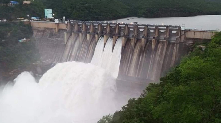శ్రీశైలం జలాశయం నుంచి మొత్తంగా చూసుకుంటే ఔట్ ఫ్లోగా 1 లక్ష 43 వేల 207 క్యూసెక్కుల వరదనీరు విడుదల అవుతుంది. అయితే జలాశయం పూర్తి స్దాయి నీటి నిల్వ సామర్థ్యం 215 టీఎంసీలు కాగా ప్రస్తుత నీటి నిల్వ 213.4011 టీఎంసీలుగా గరిష్ఠ స్దాయికి చేరుకుంది. జలాశయం పూర్తి స్థాయి నీటి మట్టం 885 అడుగులు కాగా ప్రస్తుతం నీటిమట్టం 884.60 అడుగులుగా ఉంటూ 3 గేట్లు 10 అడుగులు మేరకు ఎత్తి దిగువకునీటిపారుదలశాఖ అధికారులు నీటిని విడుదల చేస్తున్నారు.