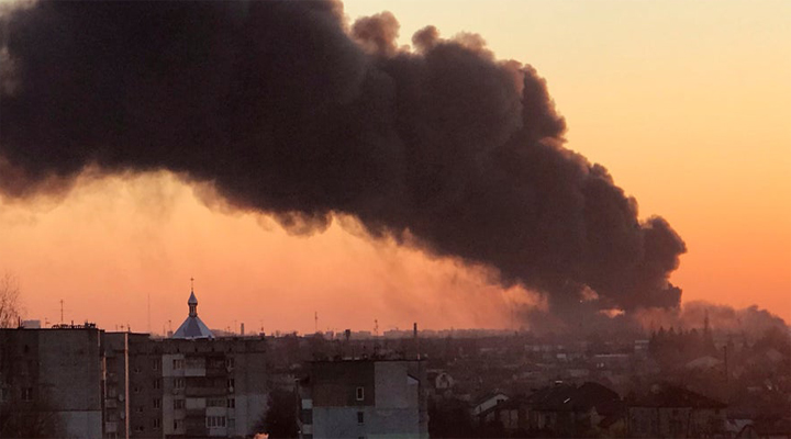 దాడులతో దద్దరిల్లిన లివివ్ నగరం అంతా నల్లటి పొగతో కమ్ముకున్నది. మూడు వారాలు దాటిన యుద్ధంలో, ఇప్పటి వరకు రష్యా పశ్చిమ ఉక్రెయిన్ ప్రాంతాలను ఎక్కువగా టార్గెట్ చేయలేదు. అయితే గడిచిన ఆదివారం మాత్రం, పోలాండ్ బోర్డర్ వద్ద ఓ సిటీపై చేసిన అటాక్ లో 35 మంది చనిపోయిన విషయం తెలిసిందే.