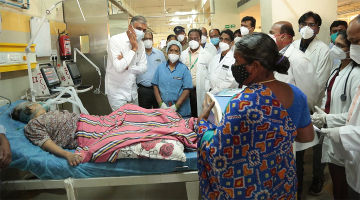 హైదరాబాద్ : ఆరోగ్య శాఖ మత్రి హరీష్ రావు గాంధీ ఆసుపత్రిలో సిటీ స్కాన్ ప్రారంభించారు. అనంతరం గాంధీ ఆస్పత్రిలోని ఎమర్జెన్సీ బ్లాక్ ను మంత్రి హరీష్ రావు సందర్శించారు. పలు విభాగాల్లోని పేషంట్ల వద్దకు వెళ్ళి ఆప్యాయంగా పలకరించారు. ఆరోగ్య పరిస్థితులపై ఆరా తీశారు. ఆస్పత్రిలోని ప్రతీ వార్డు తిరిగి, వసతులను మంత్రి హరీష్ రావు పరిశీలించారు.
