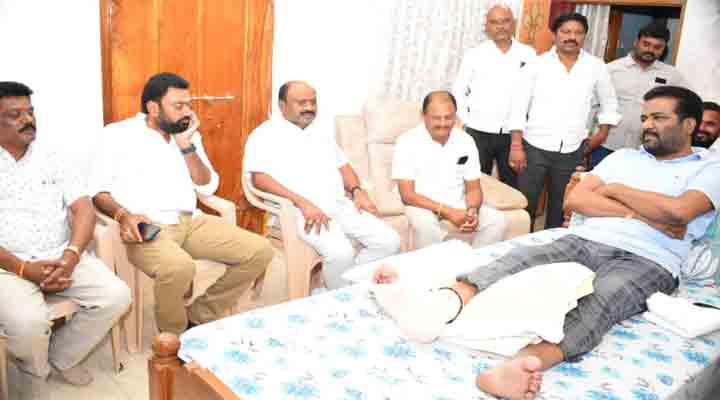 వరంగల్ టైమ్స్, హనుమకొండ జిల్లా : డీసీసీబీ చైర్మన్ మార్నేని రవీందర్ రావుని పరకాల ఎమ్మేల్యే చల్లా ధర్మారెడ్డి శుక్రవారం పరామర్శించారు. శ్రీ మల్లికార్జున స్వామి వారి బ్రహ్మోత్సవాల్లో మార్నేని రవిందర్ రావు ప్రమాదవశాత్తు కాలి గాయానికి గురయ్యారు. ఈ మేరకు ఐనవోలు లోని ఆయన నివాసంలో చైర్మన్ మార్నేనిని ఎమ్మెల్యే చల్లా ధర్మారెడ్డి నేడు పరామర్శించారు.