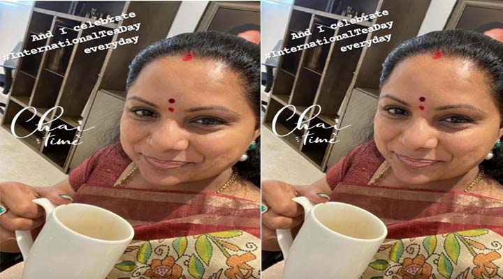 హైదరాబాద్: అంతర్జాతీయ ‘ఛాయ్ దినోత్సవం’ సందర్భంగా ఎమ్మెల్సీ కల్వకుంట్ల కవిత ఆసక్తికర ట్వీట్ చేశారు. బిజీ షెడ్యూల్ మధ్యలో, కప్పు అల్లం ఛాయ్ తాగితే, మనస్సు ఎంతో ఆహ్లాదకరంగా ఉంటుందని ఎమ్మెల్సీ కవిత ట్వీట్ చేశారు. టీ తాగుతున్న సెల్ఫీని ట్విట్టర్ లో అప్ లోడ్ చేసిన ఎమ్మెల్సీ కవిత, మీరు సైతం టీ తాగుతూ సెల్ఫీ షేర్ చేయాలని నెటిజెన్లను కోరారు.