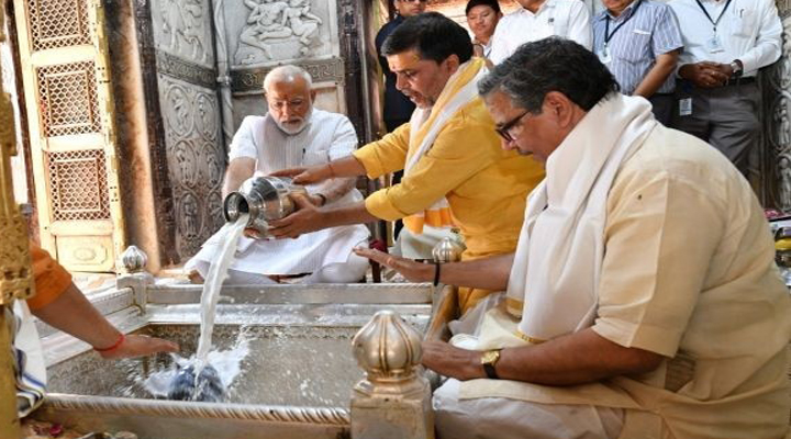 హైదరాబాద్: కార్తీక పౌర్ణమి సందర్భంగా ఈ రోజు కాశీ విశ్వనాథుడికి ప్రధాని నరేంద్ర మోదీ అభిషేక పూజలు నిర్వహించారు. తన స్వంత నియోజకవర్గమైన వారణాసికి మోదీ వెళ్లారు. అక్కడ బహిరంగ సభలో పాల్గొన్న తర్వాత ఆయన కాశీ విశ్వేశ్వరుడికి పూజలు చేశారు. లలితా ఘాట్కు ఆయన ప్రత్యేక బోటులో వచ్చారు. ఆ తర్వాత పంచామృతాలతో అభిషేకం చేశారు. ఈ కార్యక్రమంలో యూపీ సీఎం యోగి ఆదిత్యనాథ్ కూడా పాల్గొన్నారు.