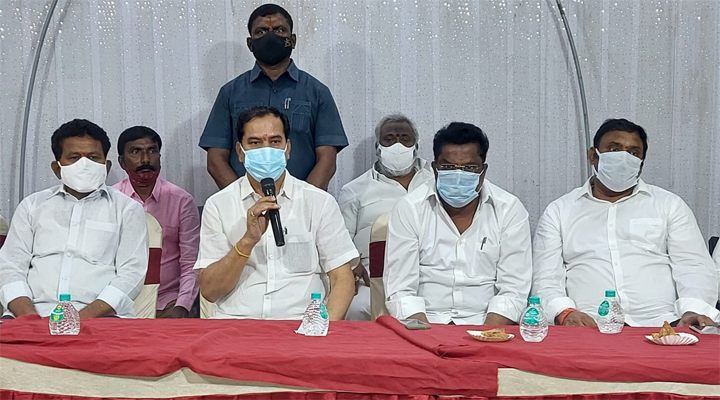 హనుమకొండ జిల్లా : కరోనా మహమ్మారి వేగంగా విజృంభిస్తున్న తరుణంలో ప్రజలందరూ తగు జాగ్రత్తలు తీసుకుని ఆరోగ్యంగా ఉండాలని ప్రభుత్వ చీఫ్ విప్, వరంగల్ పశ్చిమ ఎమ్మెల్యే దాస్యం వినయ్ భాస్కర్ కోరారు. ప్రజల ఆరోగ్యం, కరోనా వైరస్ నిర్మూలనకై స్థానిక ప్రజాప్రతినిధులు , ముఖ్య కార్యకర్తలు సైన్యంలా పనిచేయాలని దాస్యం వినయ్ భాస్కర్ సూచించారు. సుబేదారిలోని ఓ ప్రైవేట్ ఫంక్షన్ హాల్ లో నియోజకవర్గ ముఖ్య నాయకులతో నెలసరి విస్తృత స్థాయి సమావేశం జరిగింది. ఓవైపు విజృంభిస్తున్న కరోనా మహమ్మారి, మరో వైపు అభివృద్ధి పనుల శంకుస్థాపనలు, ప్రారంభోత్సవాలు మొదలగు అంశాలపై నియోజకవర్గంలోని కార్పొరేటర్లు, ముఖ్య నాయకులు, కార్యకర్తలకు చీఫ్ విప్ దిశా నిర్దేశం చేశారు.