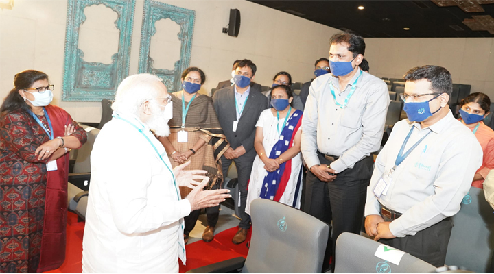 హైదరాబాద్: నోవెల్ కరోనా వైరస్కు హైదరాబాద్కు చెందిన భారత్బయోటెక్ సంస్థ కోవాగ్జిన్ టీకాను తయారు చేస్తున్న విషయం తెలిసిందే. స్వదేశీ పరిజ్ఞానంతో రూపొందిస్తున్న ఈ వ్యాక్సిన్ పురోగతి గురించి ప్రధాని మోదీ ఇవాళ సమీక్ష నిర్వహించారు. నగరంలోని జీనోమ్వ్యాలీలో ఉన్న భారత్ బయోటెక్ సంస్థను ఆయన సందర్శించారు. అహ్మదాబాద్ నుంచి మధ్యాహ్నం ఒంటి గంట తర్వాత హకీంపేట్ చేరుకున్న మోదీ.. సుమారు గంట సేపు భారత్బయోటెక్ సంస్థలో గడిపారు. ఆ సంస్థ ఎండీ కృష్ణ ఎల్లాతో పాటు ఇతర శాస్త్రవేత్తలతో ప్రధాని మోదీ వ్యాక్సిన్ పురోగతి గురించి అడిగి తెలుసుకున్నారు. బయోసేఫ్టీ లెవల్ -3 సదుపాయాలు కలిగిన భారత్బయోటెక్ పనితీరును మోదీ సమీక్షించారు. వ్యాక్సిన్ పురోగతి గురించి శాస్త్రవేత్తలు మోదీకి తెలియజేశారు. ప్రస్తుతం కోవాగ్జిన్ మూడవ దశ ట్రయల్స్ జరుగుతున్నాయి. తిరుగుప్రయాణ సమయంలో బయోటెక్ సంస్థ వద్ద ప్రధాని మోదీ కాసేపు కాన్వాయ్ బయటకు వచ్చి మీడియాకు, జనాలకు అభివాదం చేశారు. అంతకుముందు డీజీపీ మహేందర్ రెడ్డి, సీఎం సోమేశ్ కుమార్.. ప్రధానికి స్వాగతం పలికారు. హకీంపేట నుంచి ప్రధాని మోదీ నేరుగా పుణె వెళ్తారు. అక్కడ ఆయన సీరం ఇన్స్టిట్యూట్ను సందర్శిస్తారు.