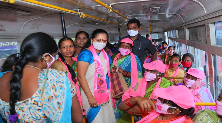 కార్యకర్తలతో కలిసి, ఎల్బీ స్టేడియానికి బస్సులో బయల్దేరిన ఎమ్మెల్సీ కల్వకుంట్ల కవిత