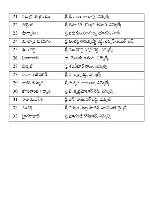 33 జిల్లాల అధ్యక్షులను ప్రకటించిన కేసీఆర్ January 26, 2022 FacebookTwitterPinterestWhatsAppLinkedinTelegram
