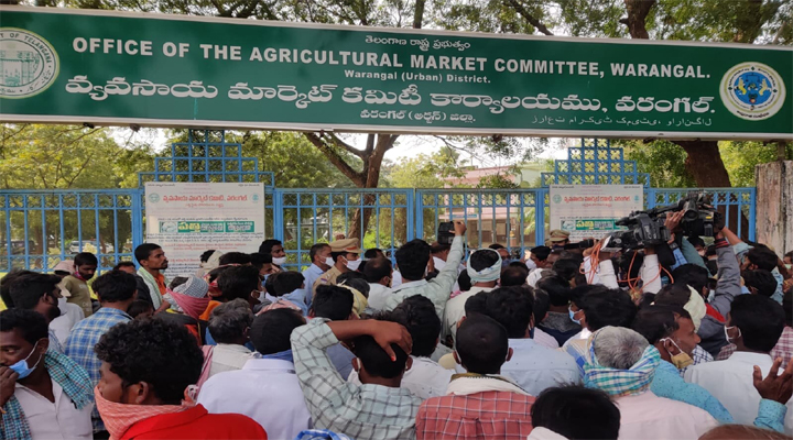 సోమవారం మిర్చి యార్డు కార్యాలయాన్ని ముట్టడించి ఆఫీసులో ఫర్నీచర్ ధ్వంసం చేశారు. అనంతరం నిరసన ర్యాలీ నిర్వహించి ప్రధాన గేటు ముందు రైతులు ధర్నా చేపట్టారు. తమకు న్యాయం చేయాలని డిమాండ్ చేశారు. సమాచారం అందుకున్నా పోలీసులు రంగంలోకి దిగారు. రైతులతో మాట్లాడి ఆందోళన విరమించే ప్రయత్నం చేస్తున్నారు. అయితే రైతులు మాత్రం ఆందోళన విరమించే ప్రసక్తే లేదని మొండికేసి కూర్చుకున్నారు. తమకు న్యాయం జరిగేంత వరకు ఆందోళన ఆపే లేదంటూ ఎనుమాముల వ్యవసాయ మార్కెట్ ప్రధాన గేటు వద్ద నిరసన వ్యక్తం చేస్తున్నారు.